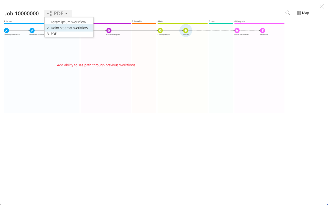 On jobs, for the VJIW action, we currently show only the current workflow. User request is for a menu listing the previous workflows the job has traversed, to see the full path the job has taken.